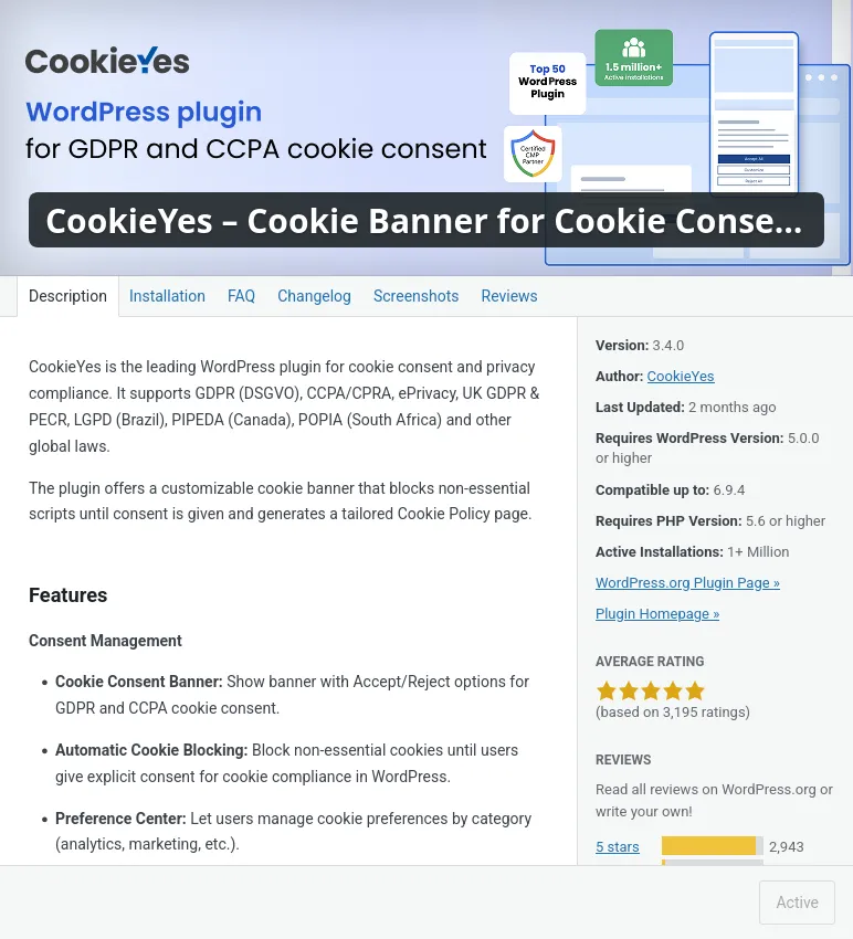 El primer pluguin que he afegit ha sigut “CookieYes”, aquest pluguin simplement afegeix les típiques cookies que sempre salten només entrar en una pàgina web.
