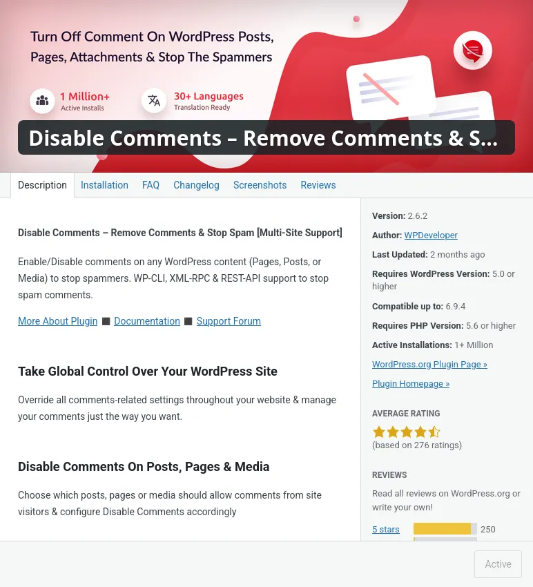 També he afegit el pluguin de “Disable Comments”, aquest pluguin el que fa és desactivar els comentaris que venen predeterminadament activats en WordPress.