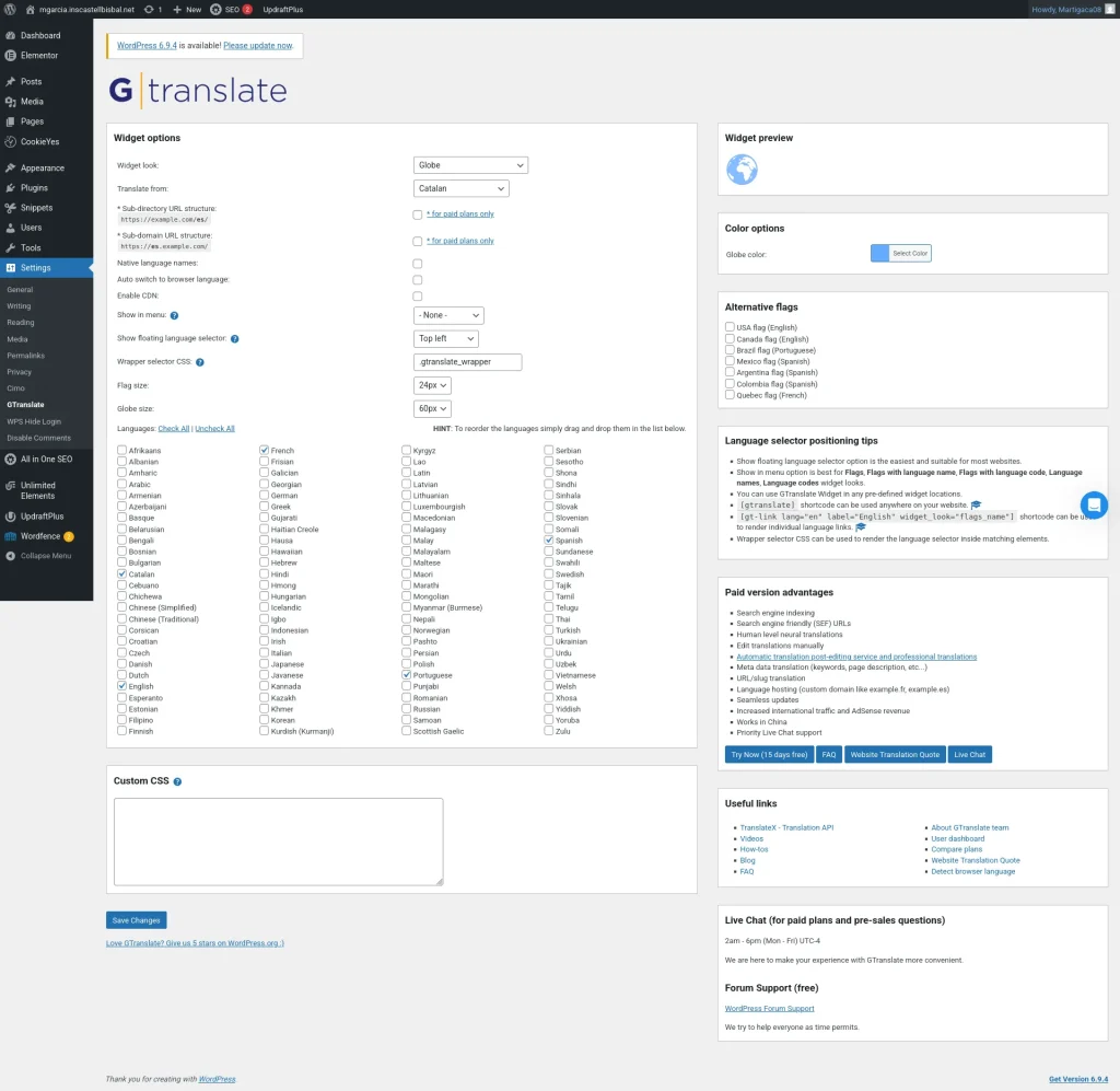 Per últim, he fet servir un pluguin per posar un traductor automàtic dins de la meva web.