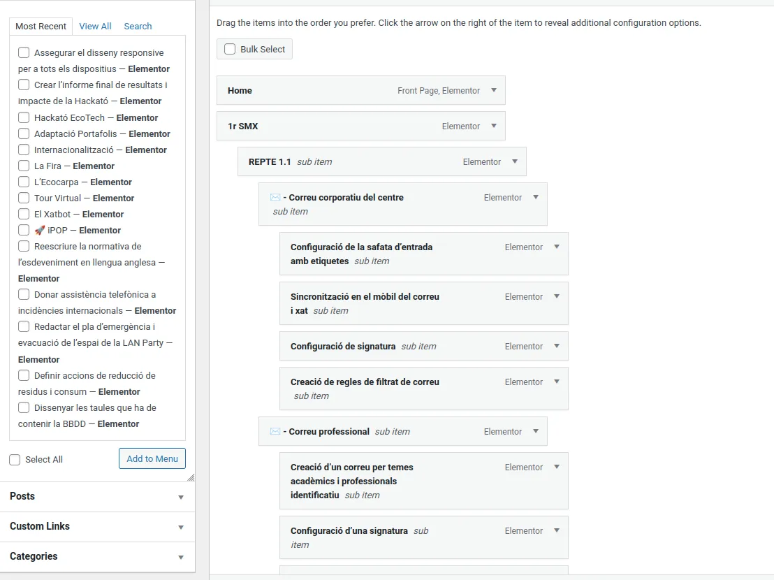 Creació del menú del lloc web Així es veu el menú principal a la meva web: També tinc menús de botons dins de la web: I aquesta és l'estructura que té el meu menú principal: