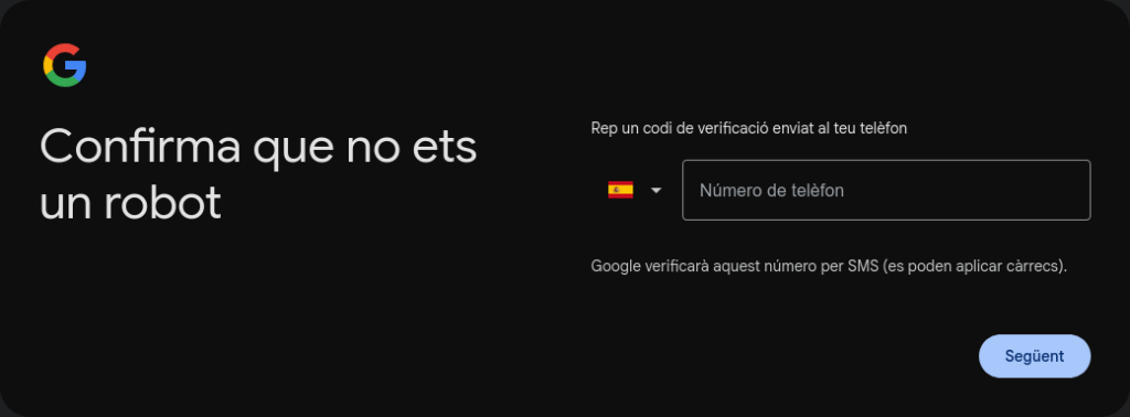 Si has posat un número de telèfon et demanarà que posis un codi de verificació.