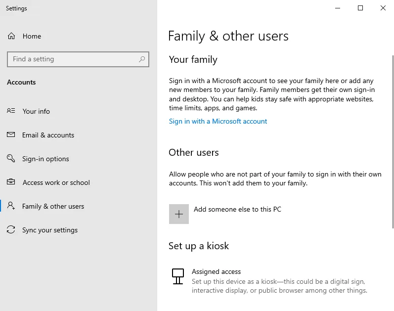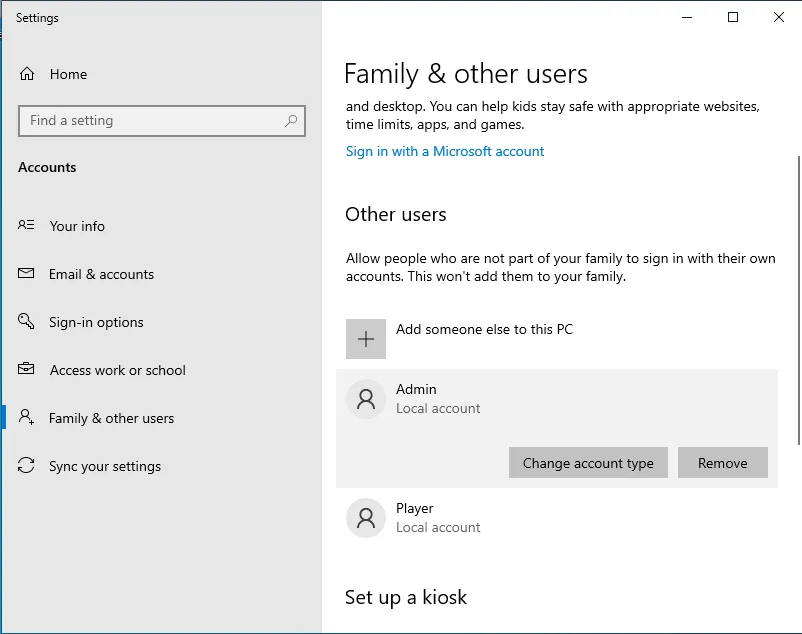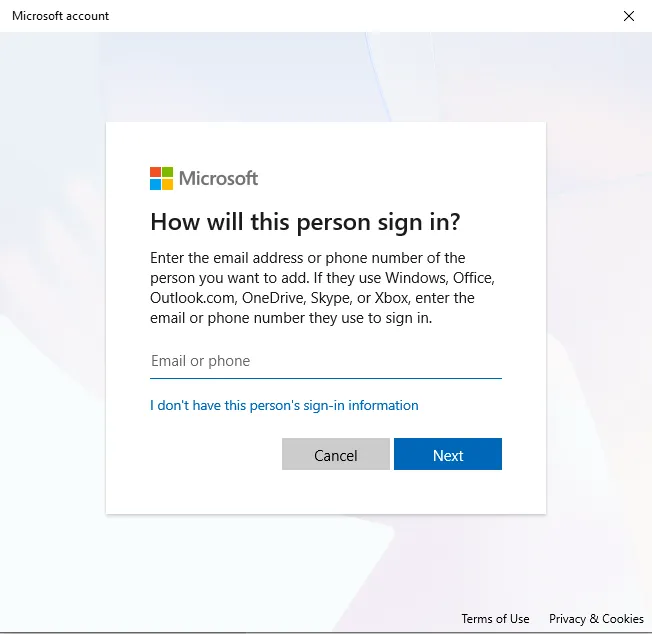 Ara s’ha de clicar a Add someone else to this PC i sortirà aquesta finestra.