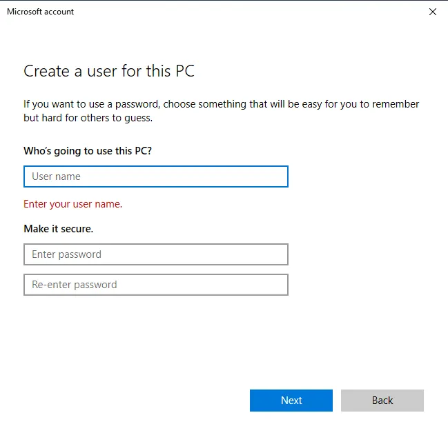 Per saltarse aquest pas hem de donar-li al text blau que està a baix d’on es posa el email. Aleshores sortirà la opció de crear l’usuari sense compte de microsoft. Una vegada fet aixó ja podràs crear els usuaris necessaris.