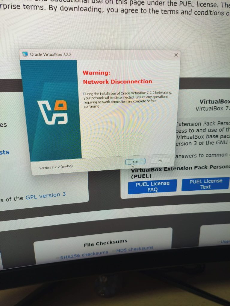 Fem clic un altre cop en “Yes”.