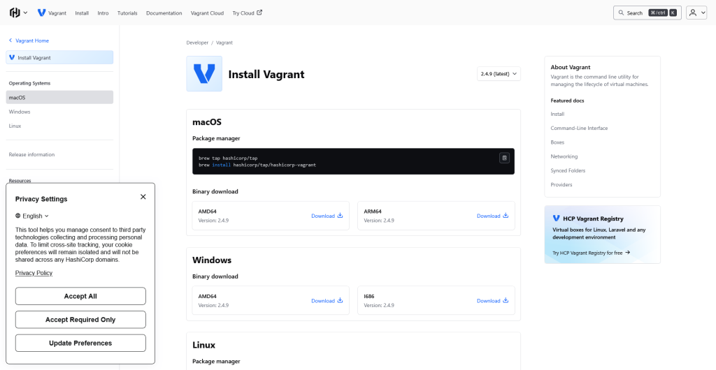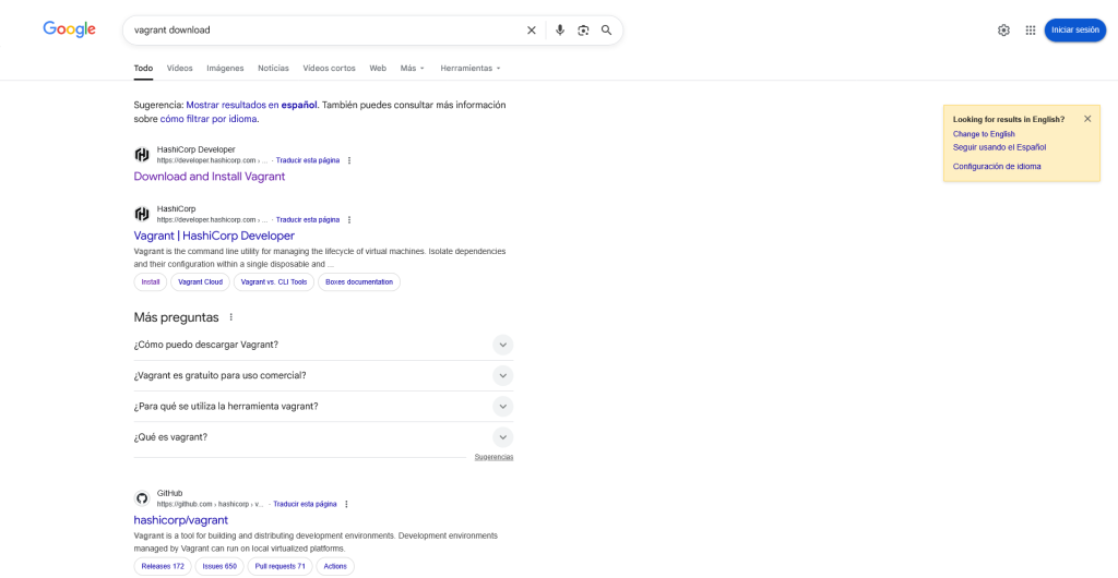 Per instal·lar-lo simplement he buscat a Google “Vagrant download” i he entrat en el primer enllaç.