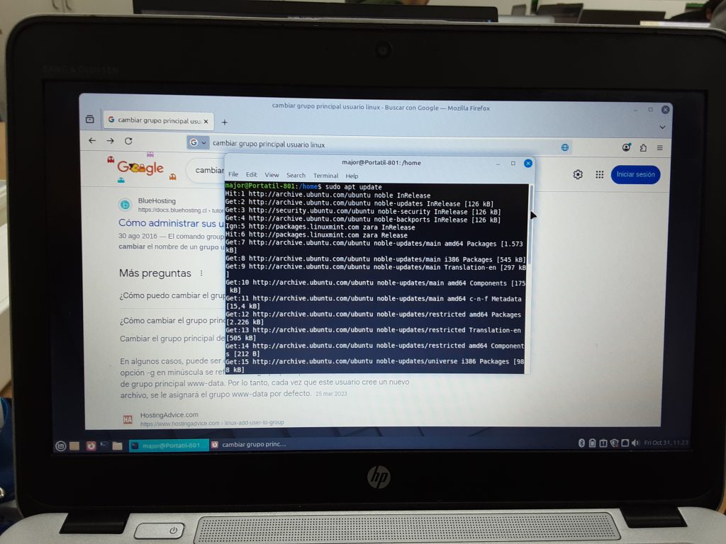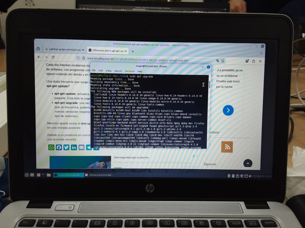 He utilitzat les comandes: “sudo apt update”, que serveix per actualitzar la llista de paquets disponibles en repositoris i “sudo apt upgrade” serveix per instal·lar les últimes versions dels paquets ja instal·lats en el sistema.