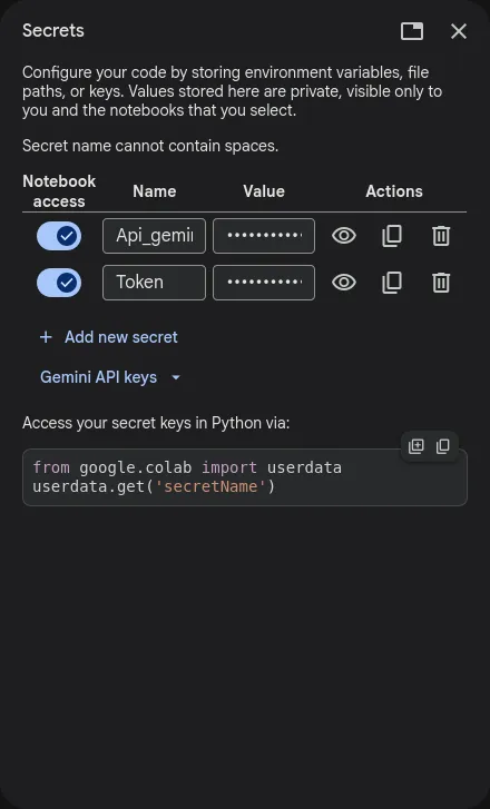 Les claus estan totalment protegides i no són visibles per a l’usuari final. perque l’API de Gemini es guarda als “Secrets” de Google Colab (mitjançant userdata.get). Només tu, com a propietari del quadern de Colab, hi tens accés.