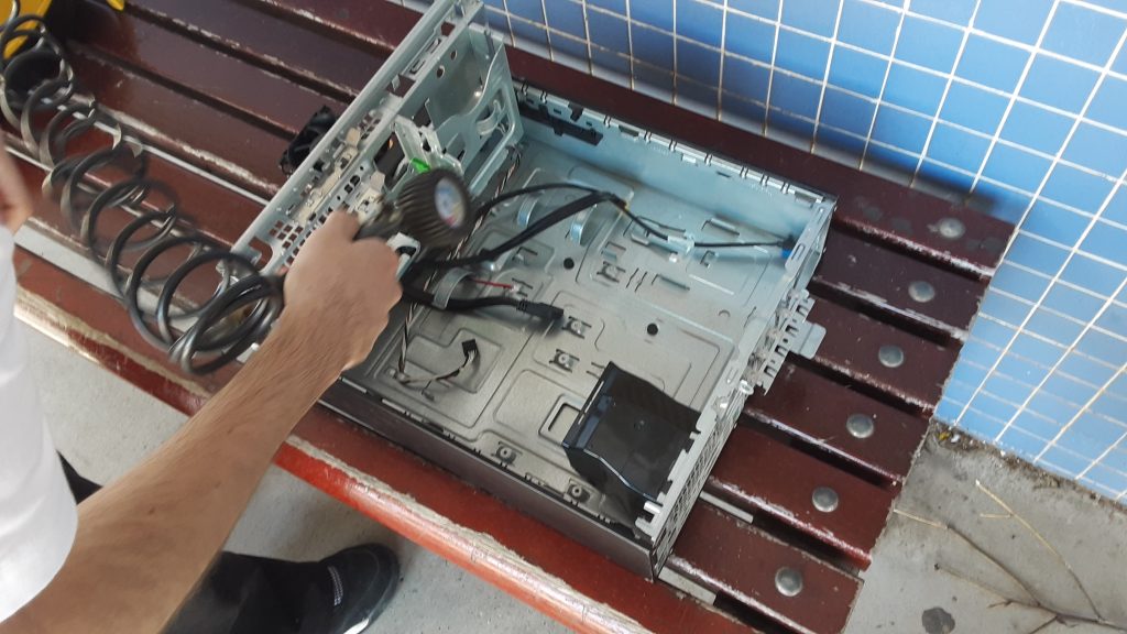Neteja i adequació dels components Vam fer servir un compressor d’aire a pressió per netejar tota la pols de l’ordinador. Un cop tot net amb les imatges fetes anteriorment vam adequar tots els components en el seu lloc i ben connectats, finalment sent aquest el resultat: