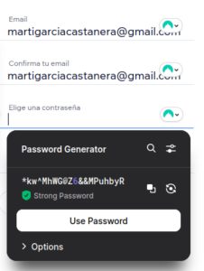 El primer i més important per tenir un WordPress segur és posar una bona contrasenya amb 15 caràcters com a mínim i que alguns siguin especials, en el meu cas el meu gestor de contrasenyes m’ha generat una contrasenya molt segura.