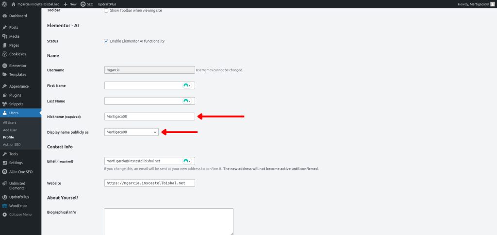 També he canviat el meu “Nickname” que és el que es veu públic a la web, per tal d’afegir més seguretat.