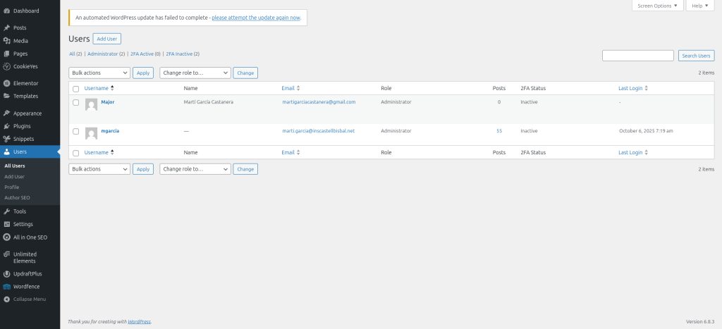 També he instal·lat un pluguin de seguretat anomenat “Wordfence Security”.